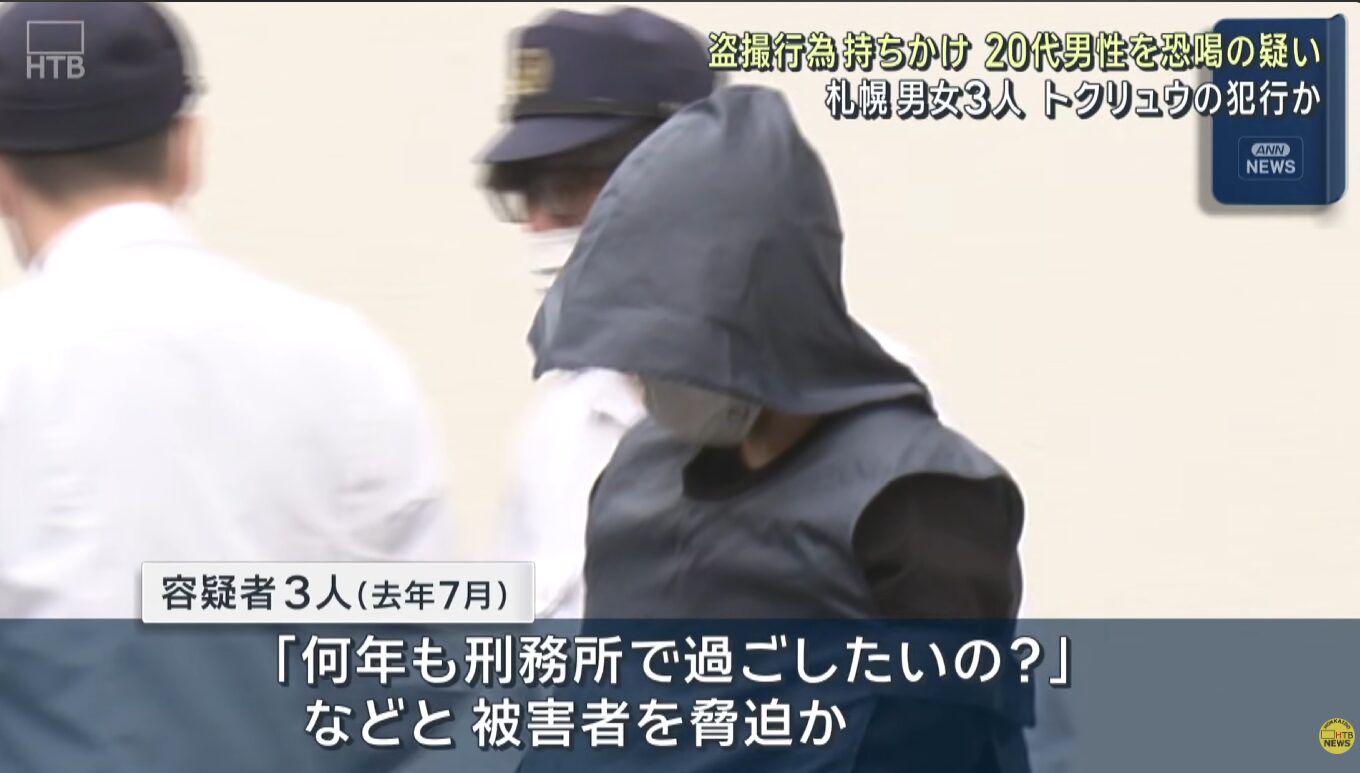 STVニュース北海道「『何年も刑務所で過ごしたいの?』3人での性行為誘う→盗撮持ちかけ恐喝 3人再逮捕トクリュウか」(2026年4月10日)