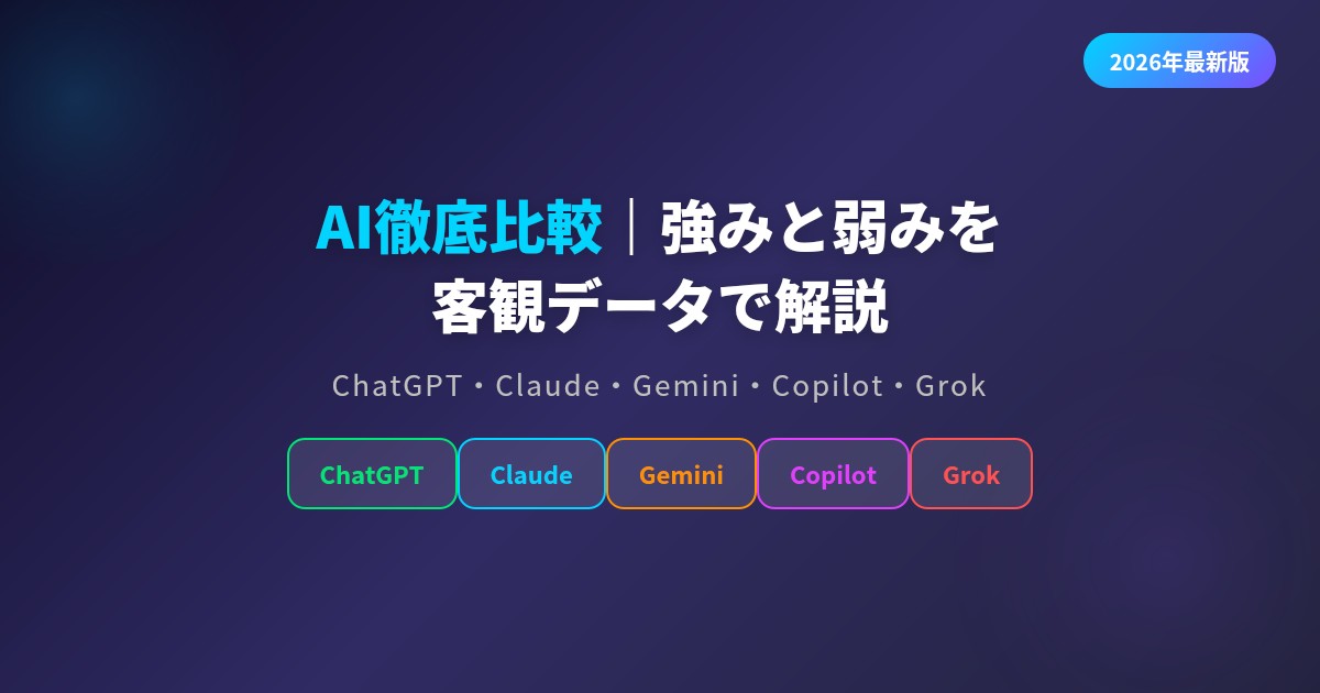 「結局、どのAIを使えばいいの?」——2026年に入り、主要AIが次々とアップデートを重ねる中、この疑問を抱える人が急増しています。本記事では、ChatGPT・Claude・Gemini・Copilot・Grokの5大AIを、ベンチマークや実務での評価をもとに客観的に比較します。